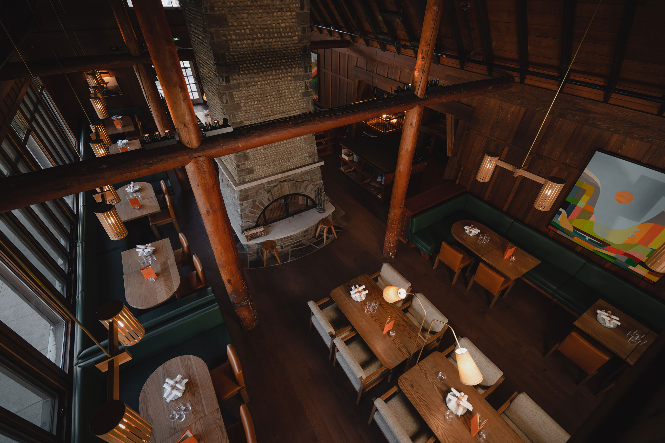 A contemporary take on a charming mid-century chalet, Banff’s Bluebird restaurant plays off the rich Alpine culture and the primal instinct to seek shelter, fire and to socialize after a bluebird day.”