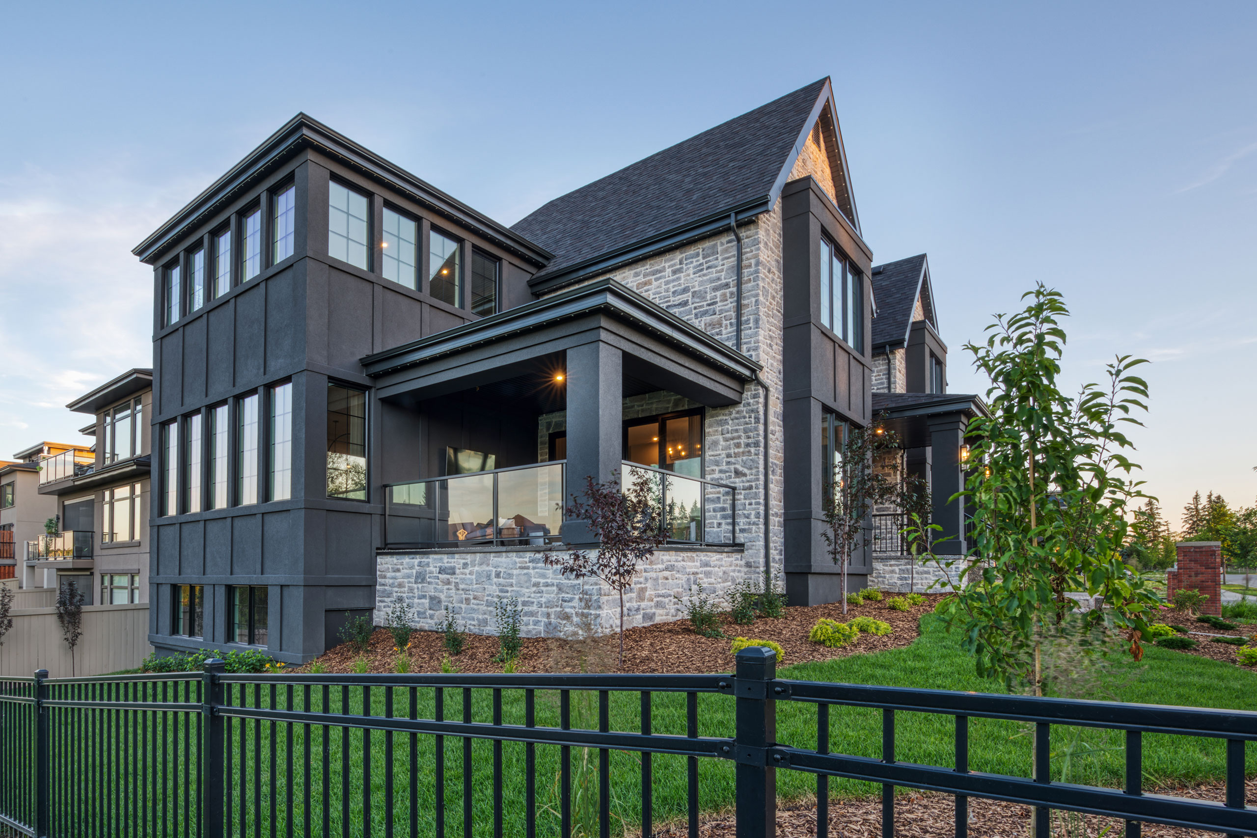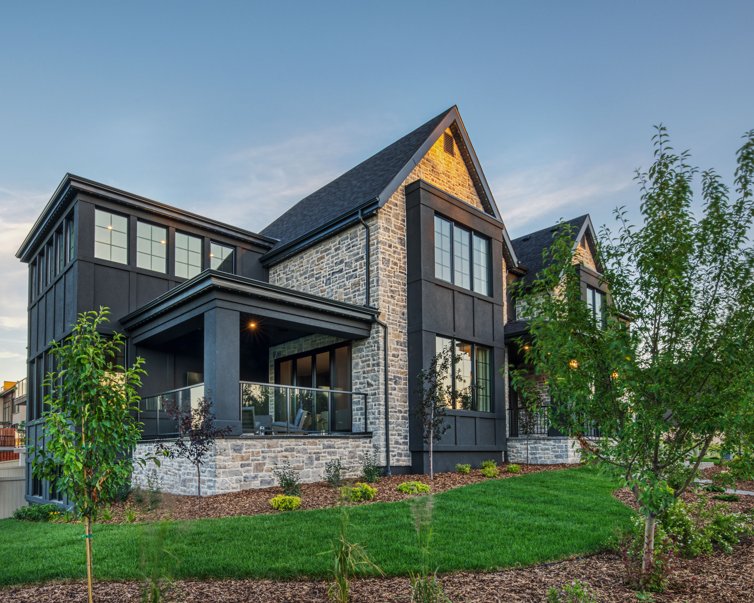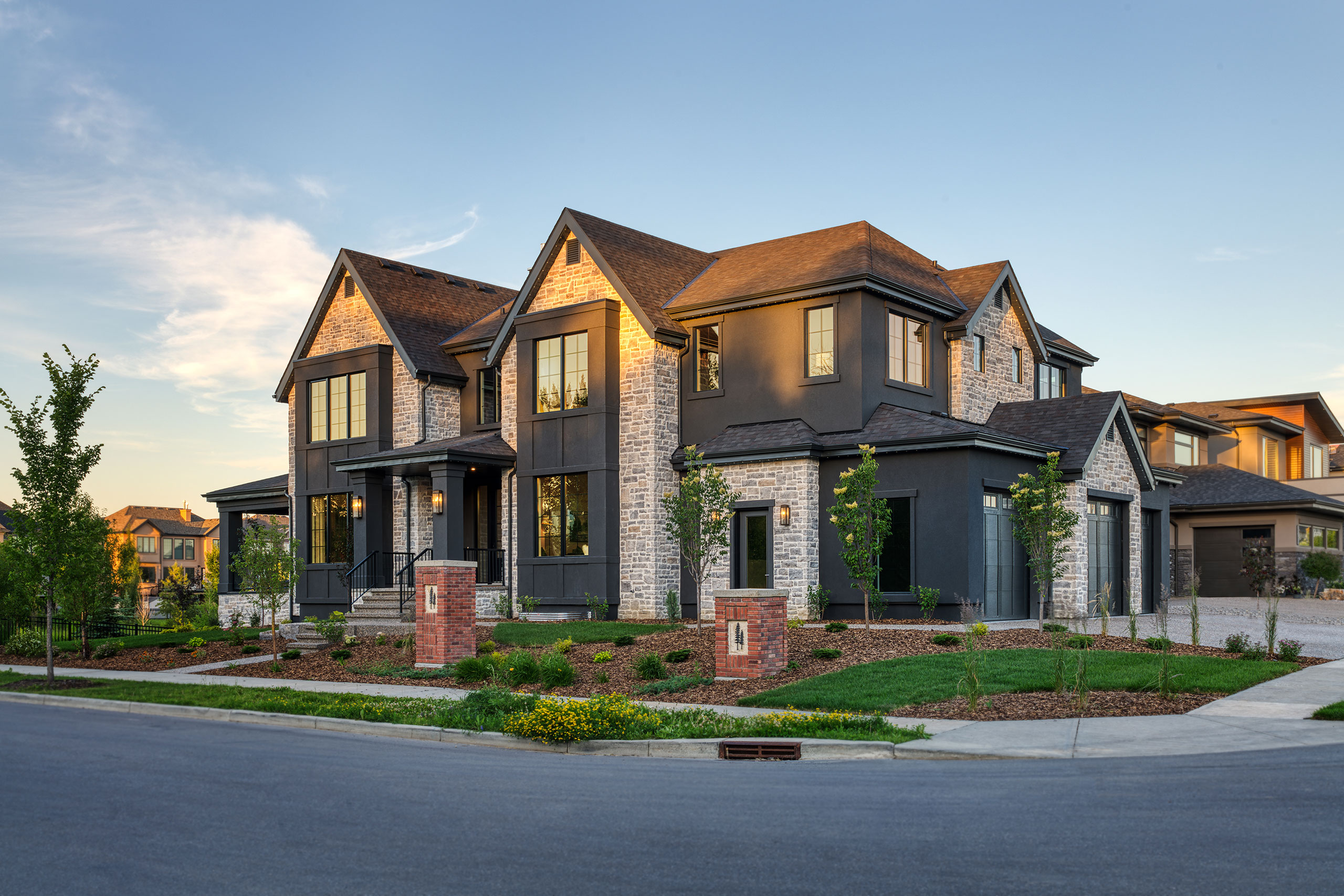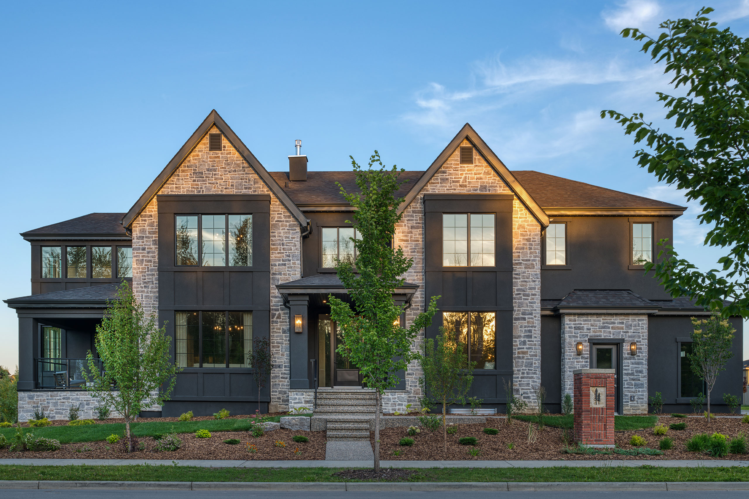 This 2023 Mighty Millions Lottery Home which supports the Stollery Childrens Hospital was built by New Ground Developments. It’s a modern take on the French Country style using a light-colored stone and mortar to contrast the dark stucco. The 5,757-square-foot grand prize home is a modern European style house with Tudor hints on the outside. The Masonry exterior was completed by Bricksmiths Masonry. Built on a corner lot masonry is featured on all the prominent sides allowing this home to beautifully show this masonry to the neighborhood.