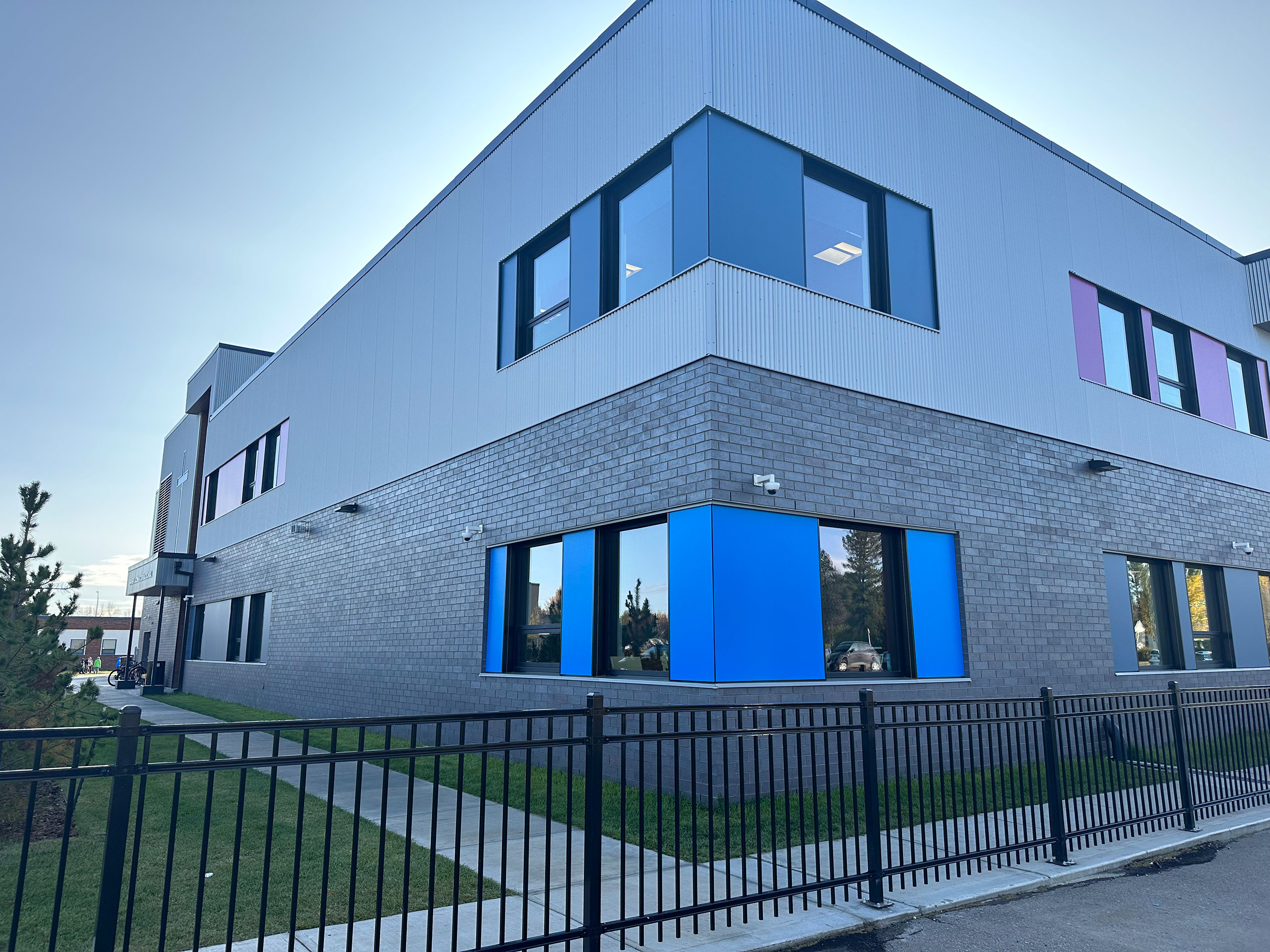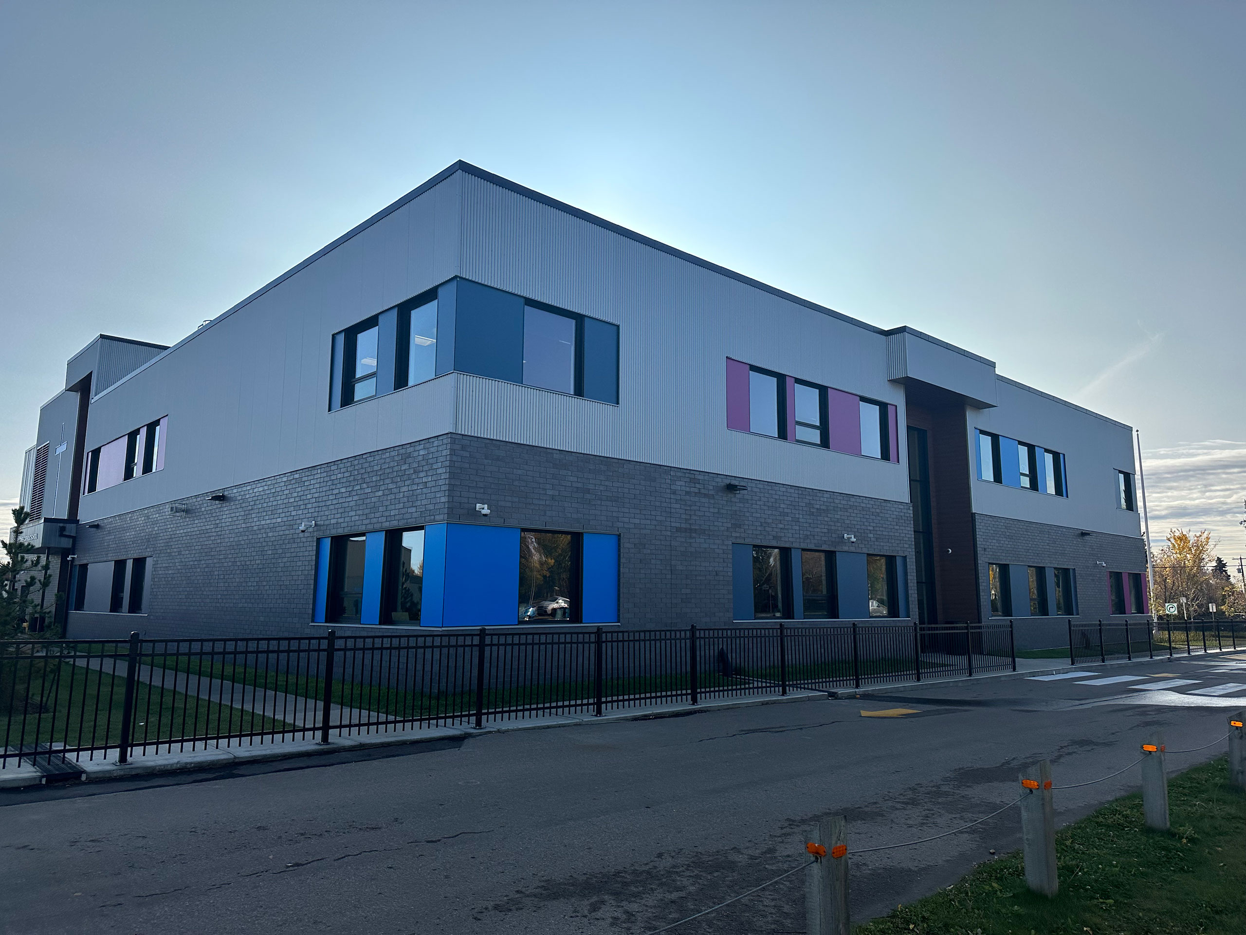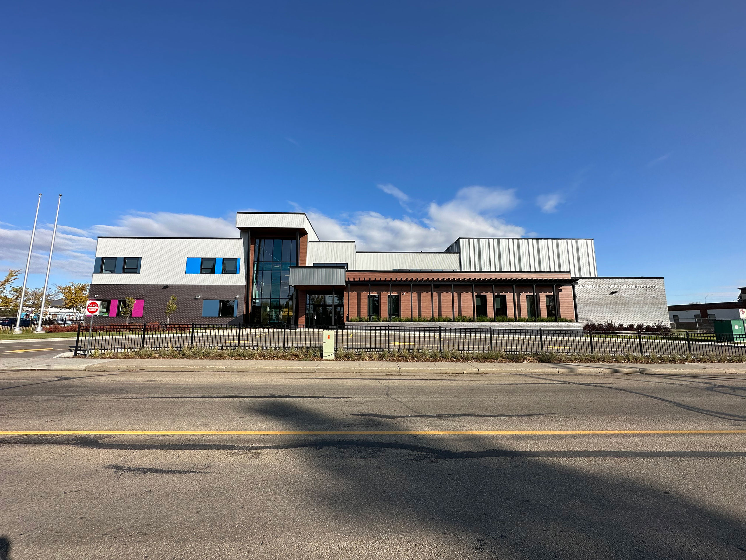 The Father Lacombe School Replacement project consisted of the demolition of the original school and brand new build of a replacement school in its place. The interior corridor and classroom walls were made of 10cm and 20cm concrete block to help create a durable environment throughout the school. The structural gymnasium is a combination of 30cm concrete block and 30cm Soundblox. The gymnasium had open view blocks throughout to help accommodate more structural rebar. A large portion of the school exterior was Utility sized Endicott brick in a Dark Ironspot colour.
