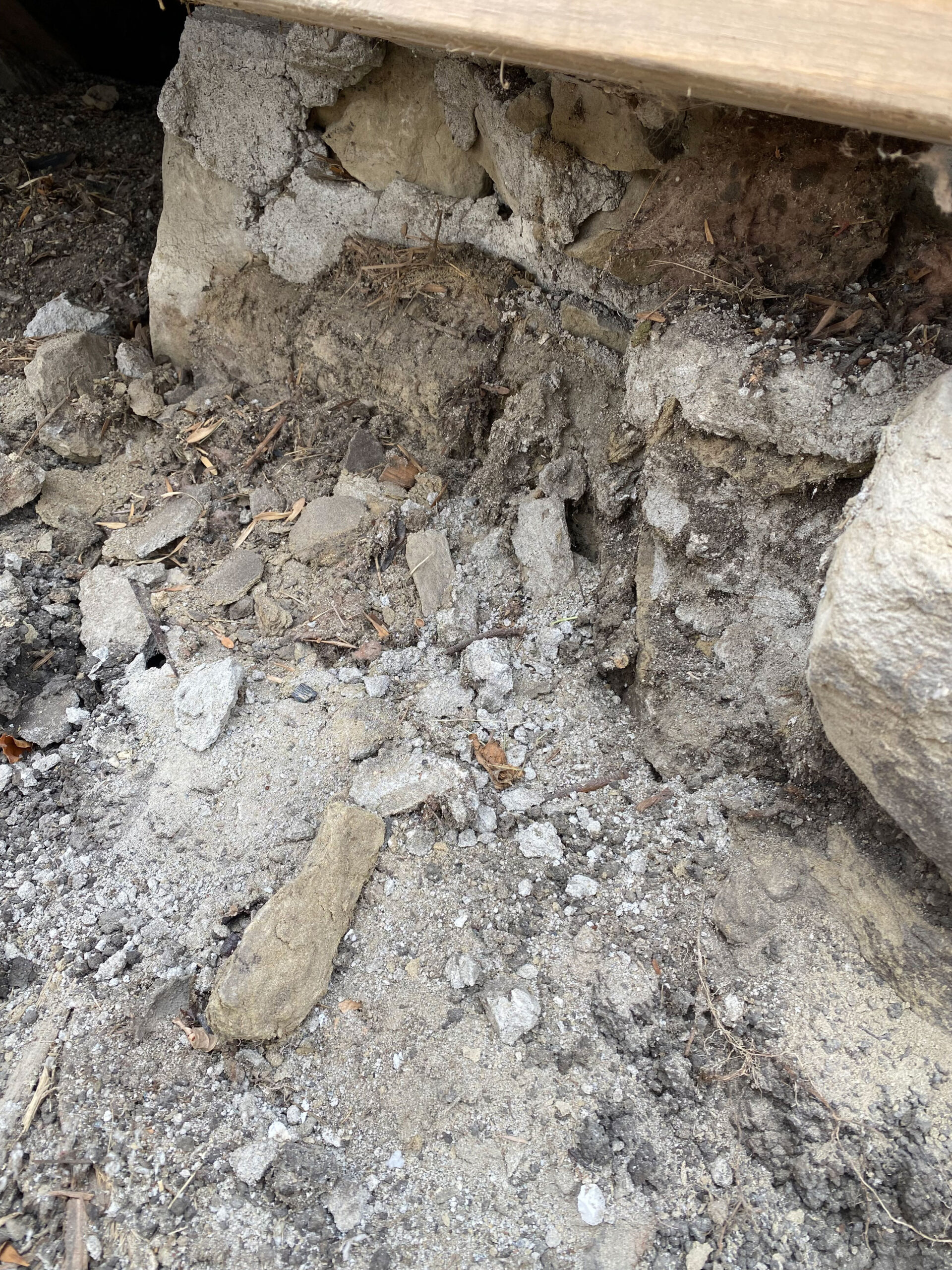 Photo 1- This shows deterioration and crumbling of original foundation.