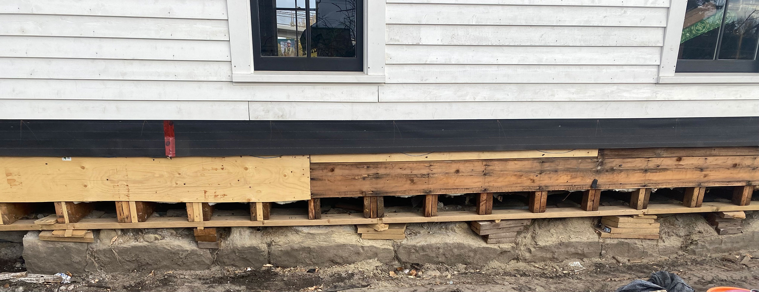 Photo 2- Sill plate had to be replaced. General contractor put shims on original foundation so he could install new windows. That made it difficult for me because there could be no settling. Otherwise windows would not open and close. I had to rebuild the foundation in short sections.