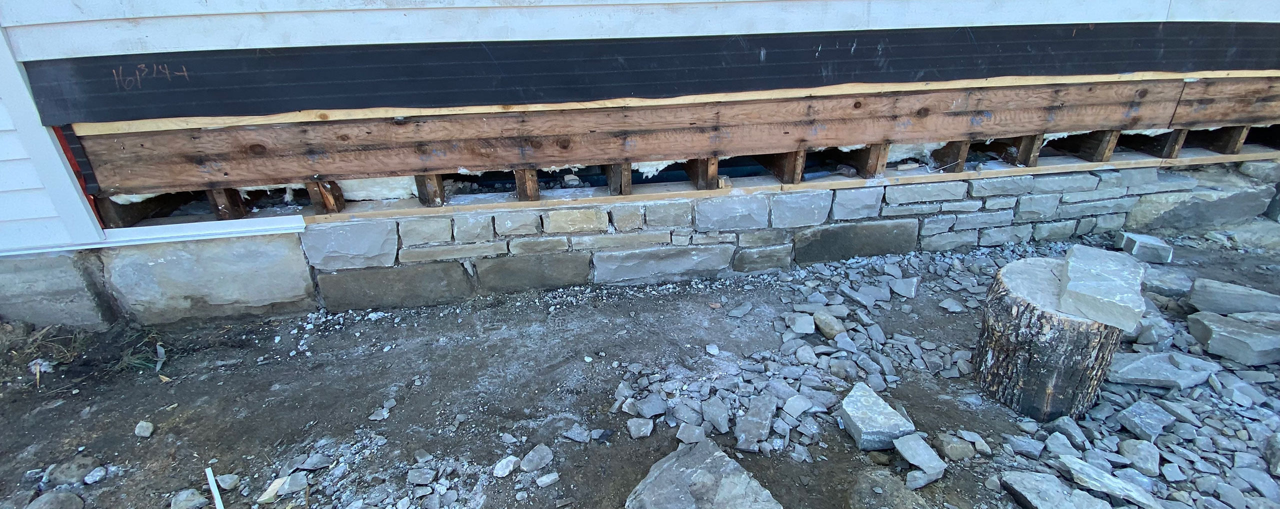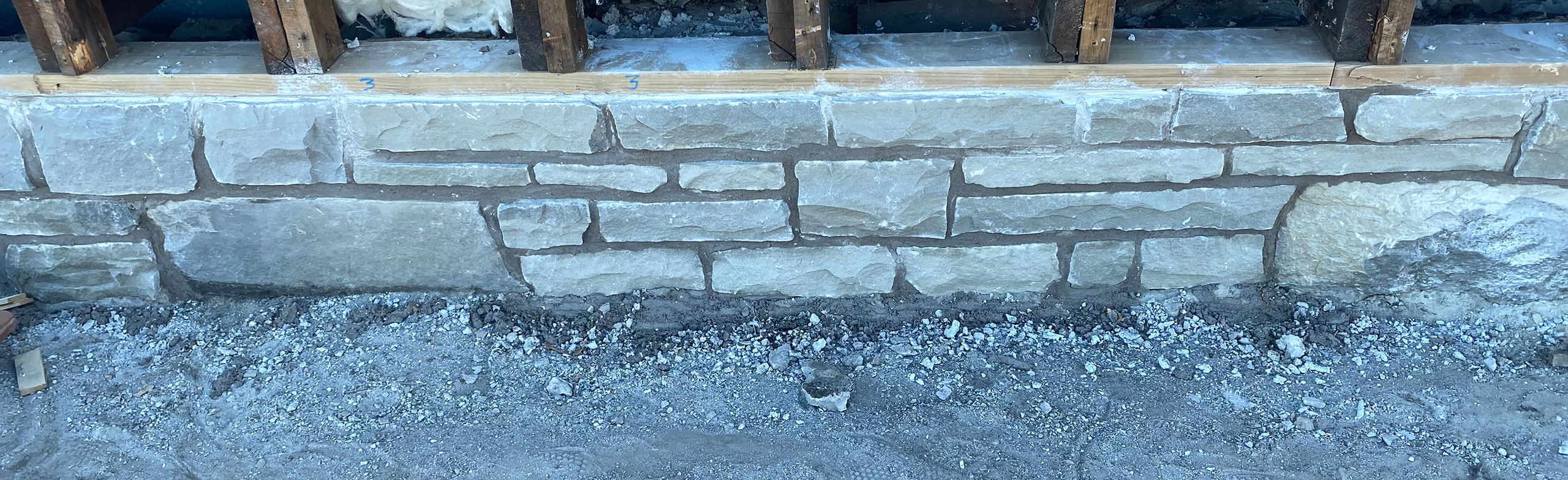 Photo 5- Because this was a historic site, I had to reuse as much of the original foundation as could be salvaged. Sometimes only half of the stone could be reused and sometimes it was just dust. As per instructed by the provincial government.