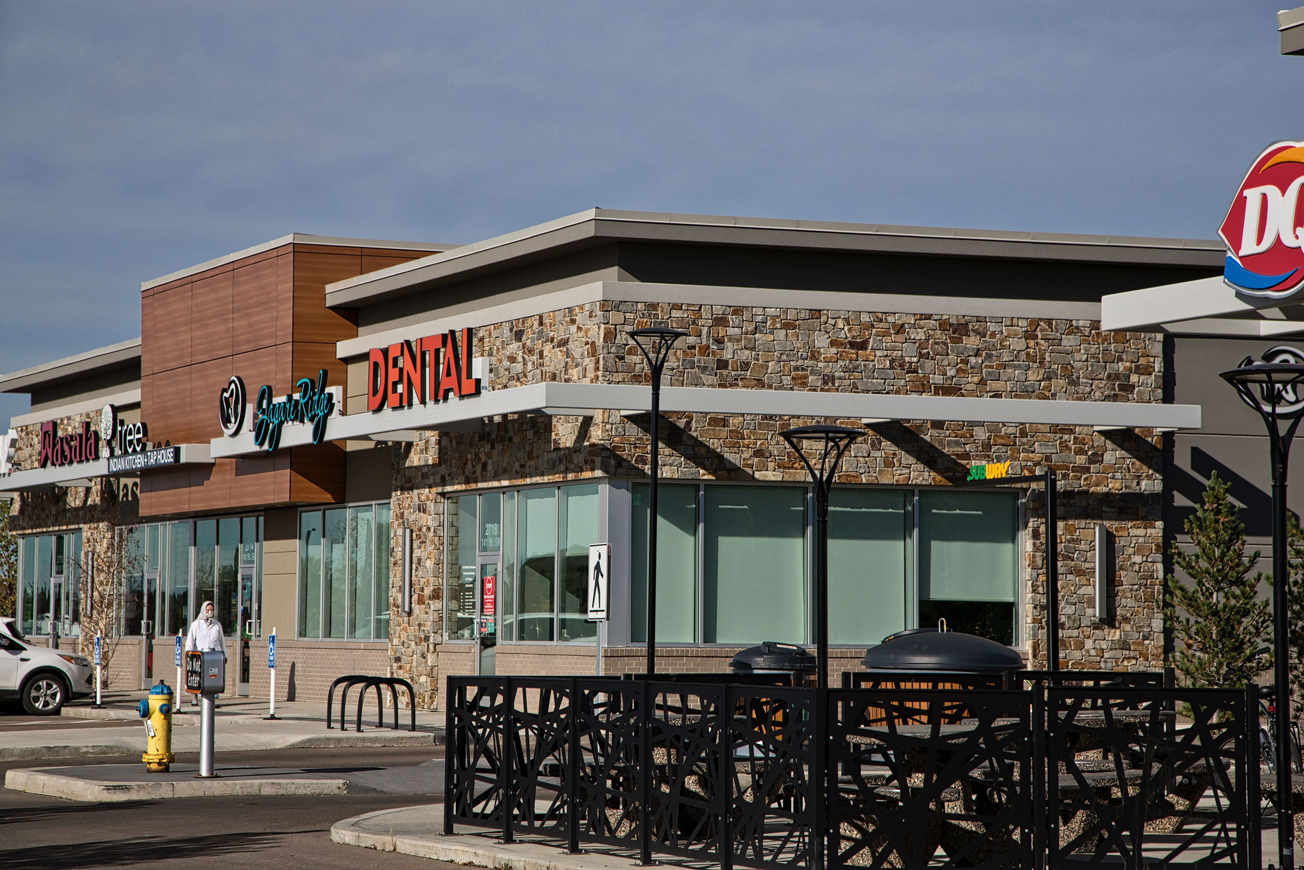 Natural stone for masonry and landscape features thrives throughout the community and commercial development of Jagare Ridge. Masonry is front and centre around the golf course, ponds and parks, walking trails, the waterfall, and when shopping or dining!