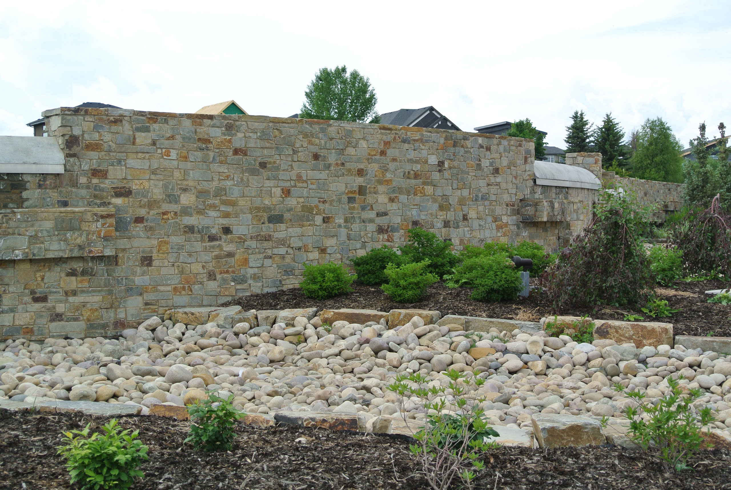 Jagare Ridge is Edmontons premier residential and commercial community. Aspen’s involvement in the community masonry design has been going for more than a decade, with structures including: multiple community entrance features, stone fence and column features, a 3500 sqft stone waterfall wall and architectural feature for the stormwater management pond and golf course.