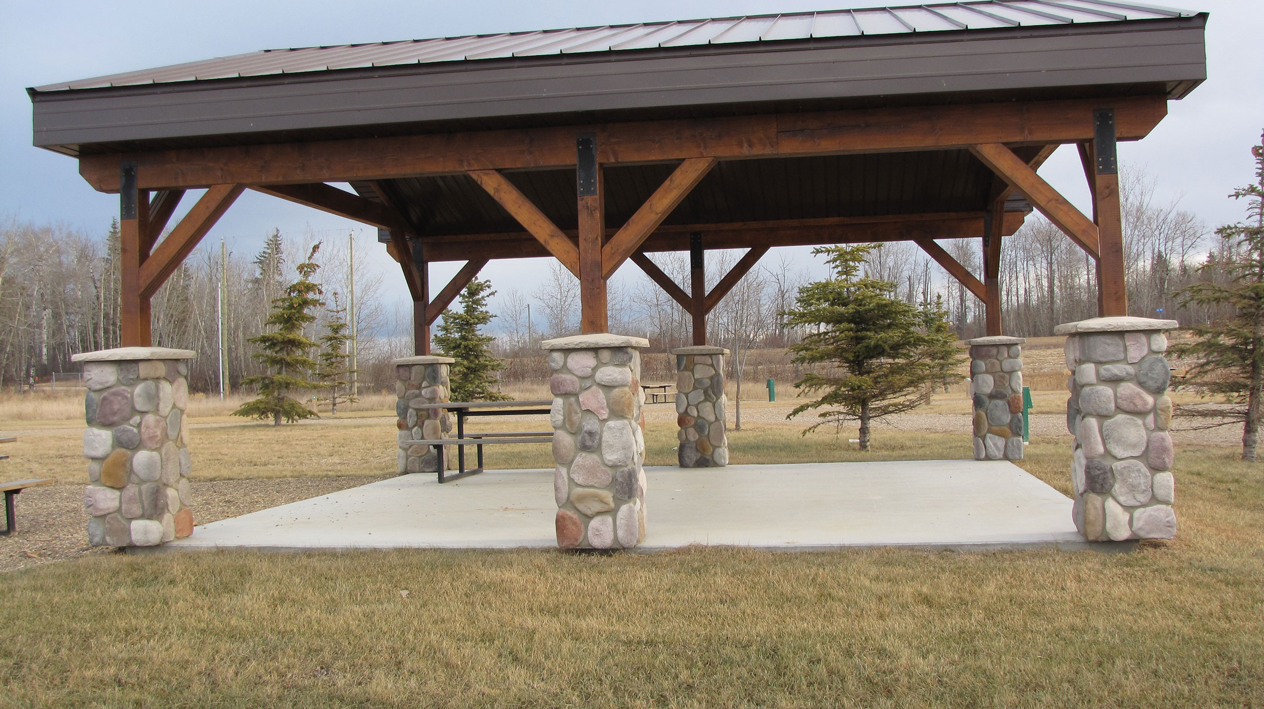 The washrooms were constructed with 8″ CMU so as to be more durable, as some were in remote locations. Stone and wood beams were used on both washrooms and gazebos to give both the same look. The county has built washrooms of the same design at boat launches around the county.