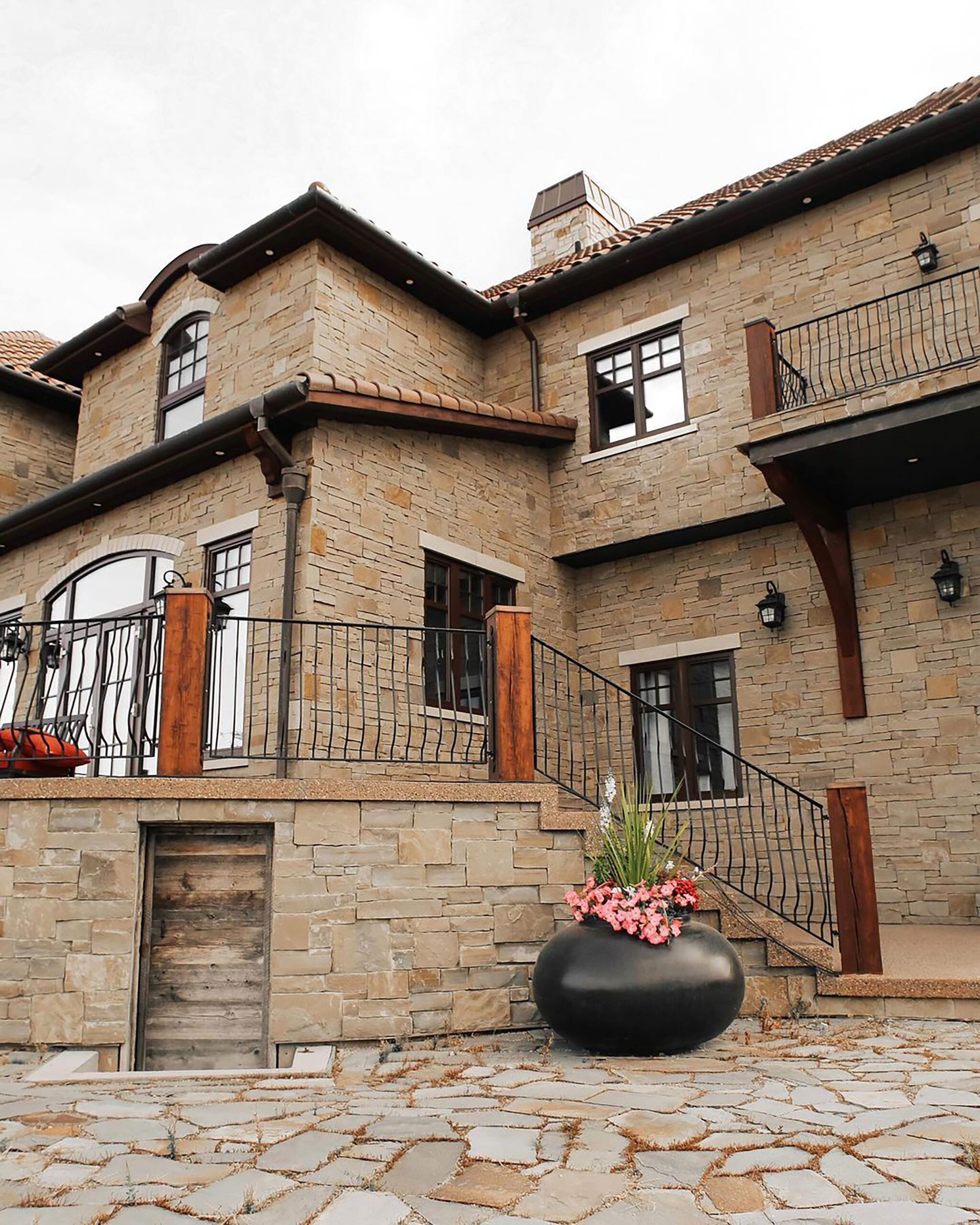 In the creation of a grand castle-like residence, Tanners Masonry employs Frontier Tumbled Thin Veneer for a non-structural masterpiece. Meticulously crafted, each stone contributes to a facade that resonates with regal splendor. The artistic use of Frontier Veneer showcases Tanners Masonry’s commitment to precision and innovation, redefining residential aesthetics with a captivating blend of texture and timeless beauty. This dwelling stands as a testament to the seamless fusion of artistry and masonry, creating an awe-inspiring and distinctive architectural statement.