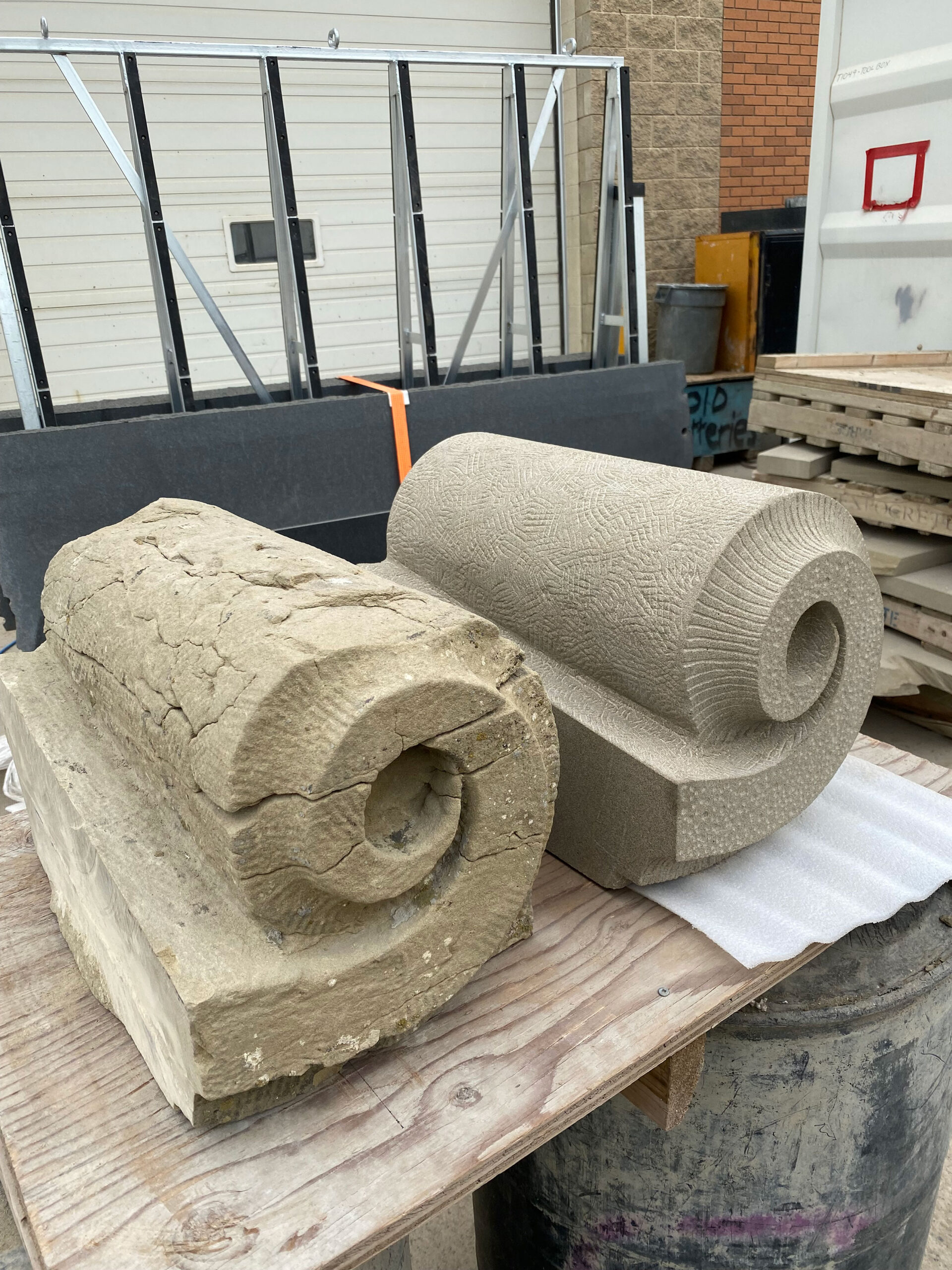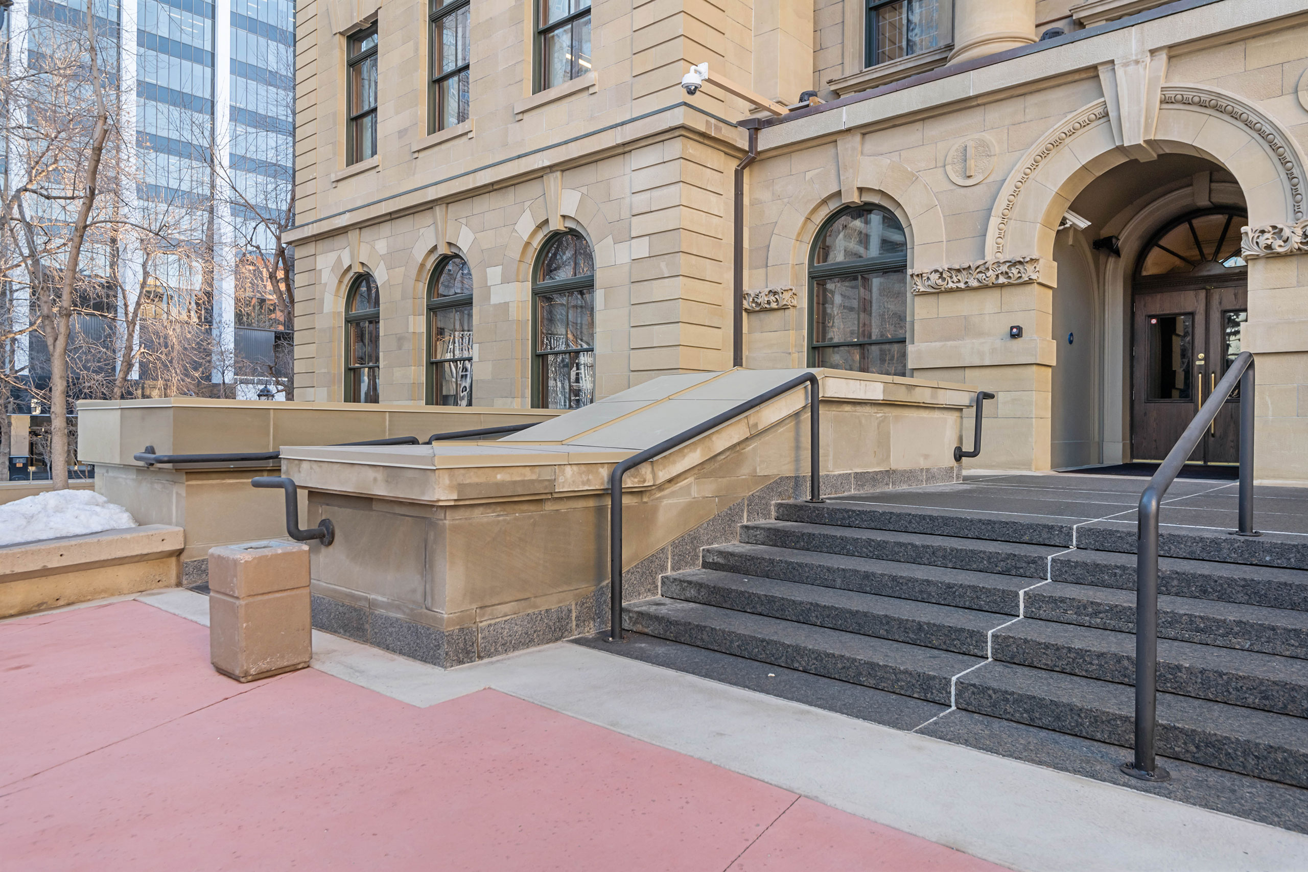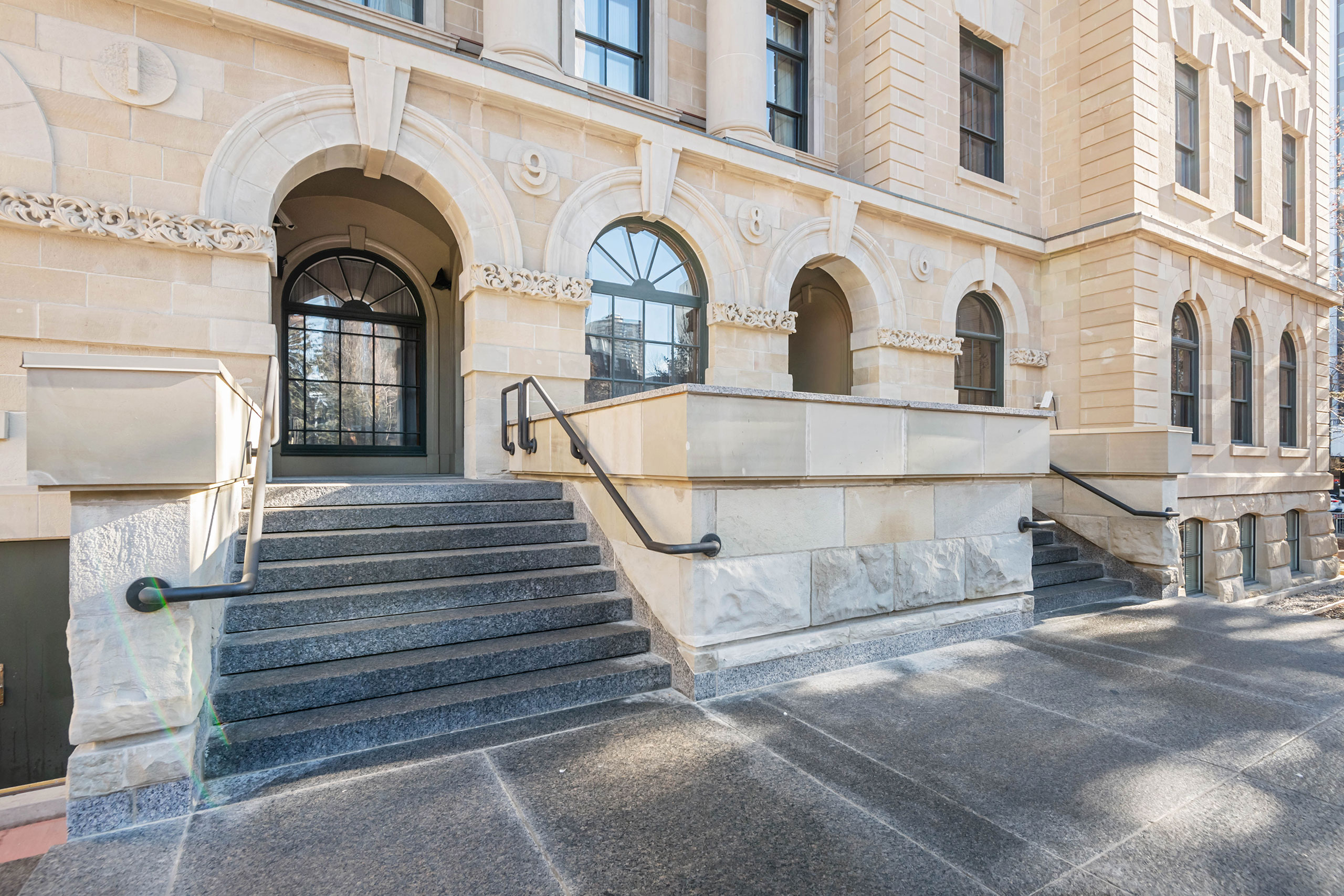 The original construction was completed in 1907 and this building was first utilized in the training of Alberta school teachers. The restoration consisted of the East and West granite stair entrances and sandstone planters. It also involved enhancing the water management on the building parapets along with selective sandstone repairs. Granite treads and landings were deconstructed and rebuilt after new membrane and insulation were installed to better manage the moisture. Sandstone planters were also deconstructed and rebuilt with restoration required to the extensive water damaged stone. This consisted of Dutchman repairs, Jahn repairs and selective stone replacements. Selective roofline architectural stone elements were also restored in-situ.