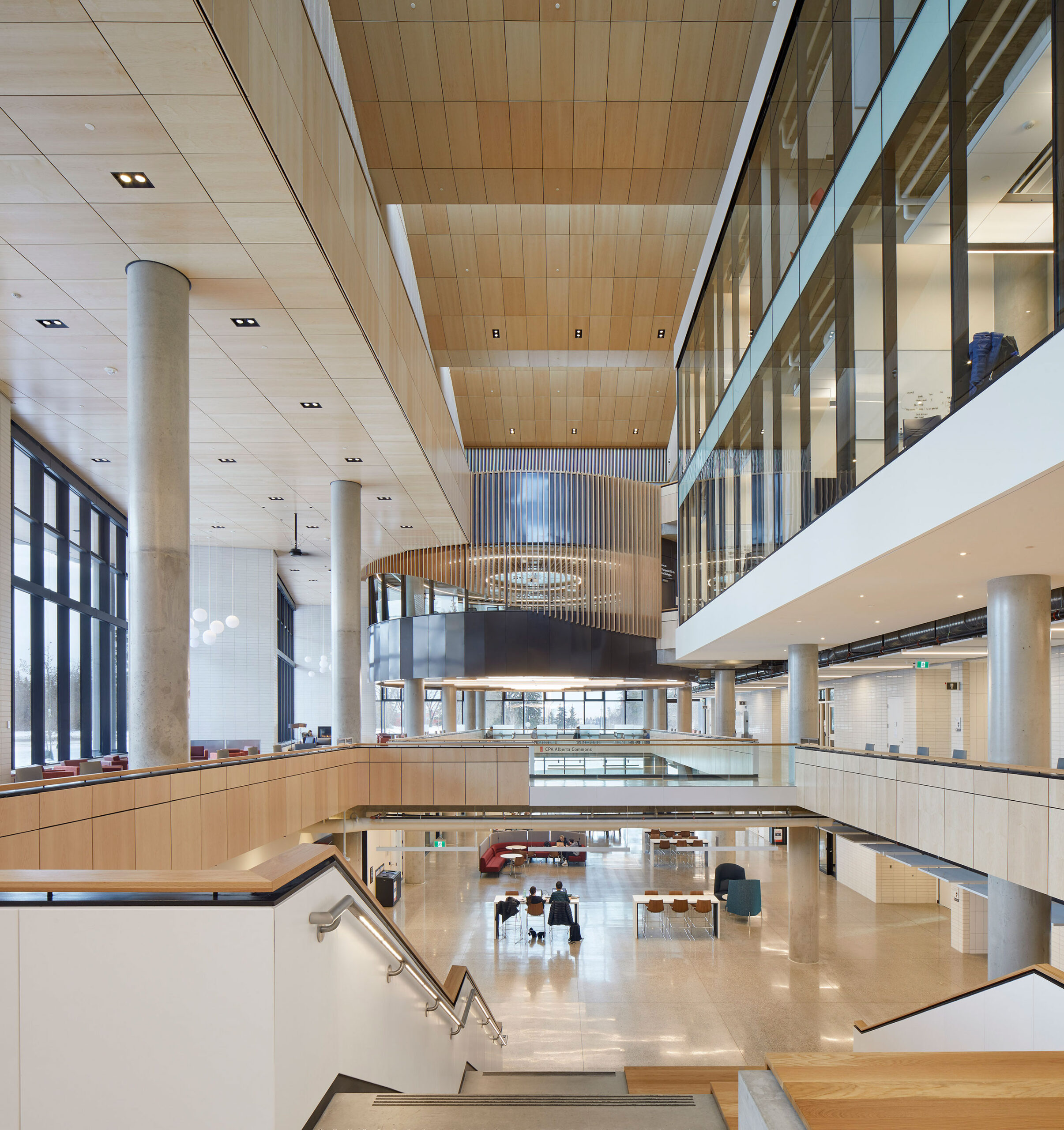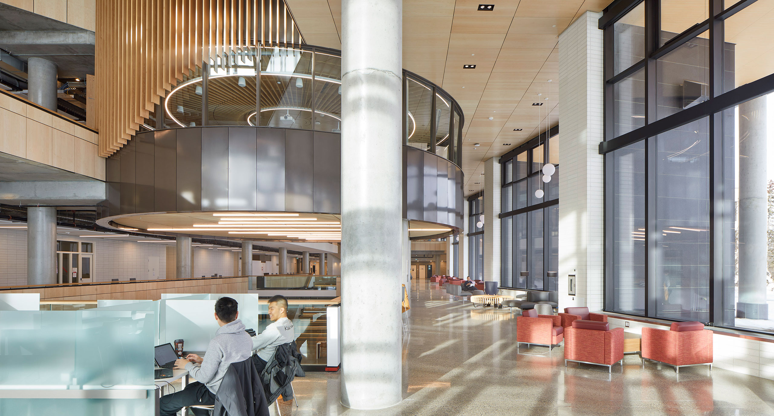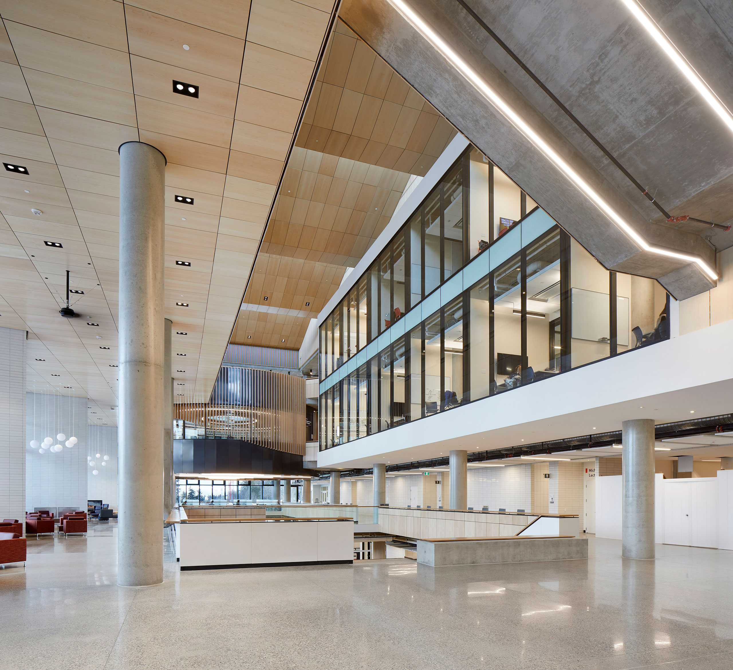 The project, entitled Mathison Hall, is ~11,000sm of new construction located south of the existing Scurfield Hall building and connected via a four-storey atrium. The new building will create a dynamic, technology-rich, highly sustainable and innovative new facility to meet expanding educational program needs and support greater community engagement at the University of Calgary’s Main Campus. The addition to the Haskayne School of Business aspires to create a “home” for its student body and activate a stronger relationship between students, faculty and administrators.