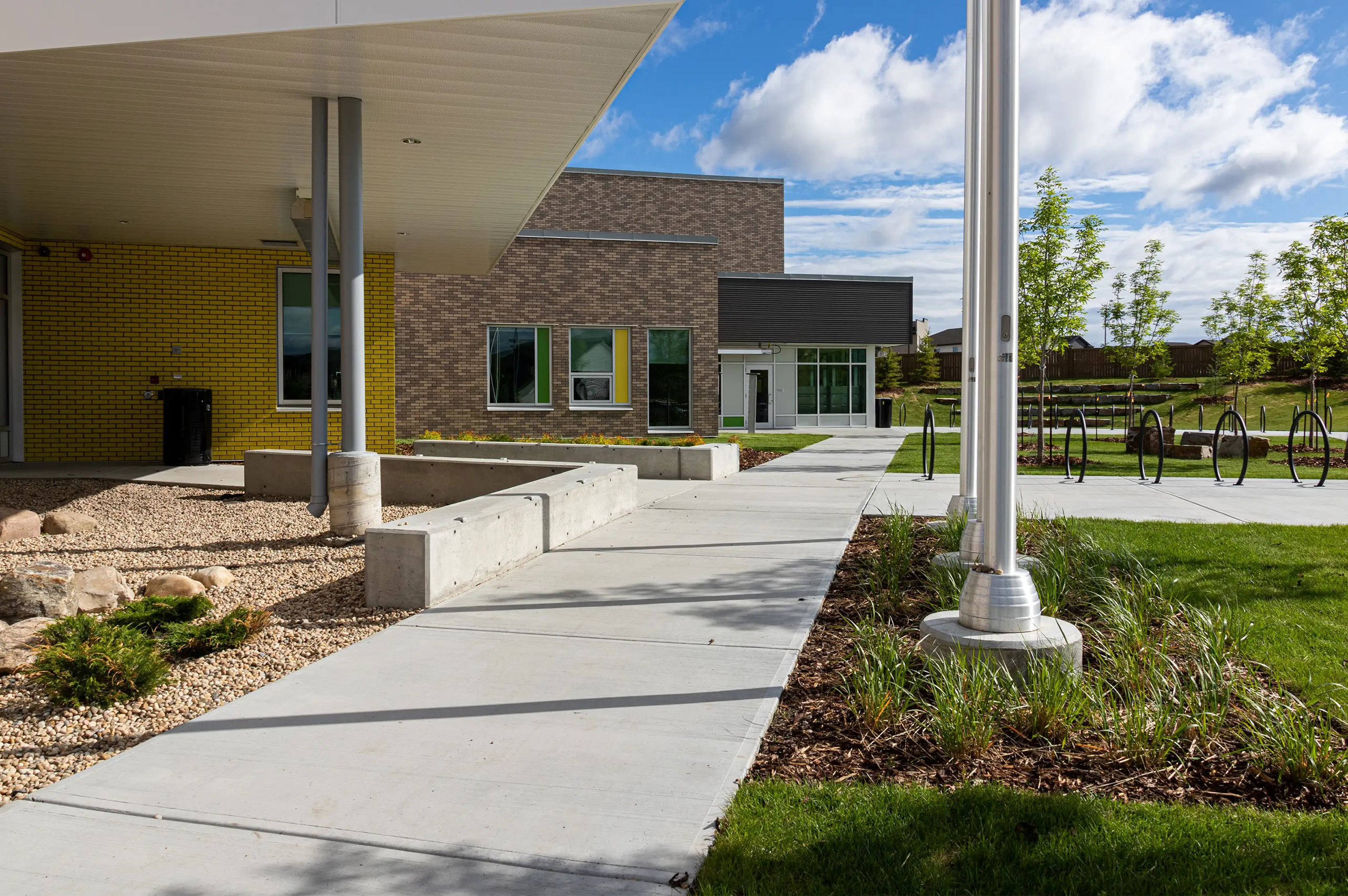 But that’s just the beginning! From its sleek, modern exterior to its engaging interior spaces, every inch of the Soraya Hafez school is meticulously crafted to inspire and empower students. Picture yourself walking through the doors, greeted by vibrant colored metal panels and the warm embrace of Glen Gery Mustard Yellow brick, radiating an aura of energy and enthusiasm. And let’s not forget about the captivating Hebron Ocean Blend brick, adding a touch of timeless elegance to the overall design.
