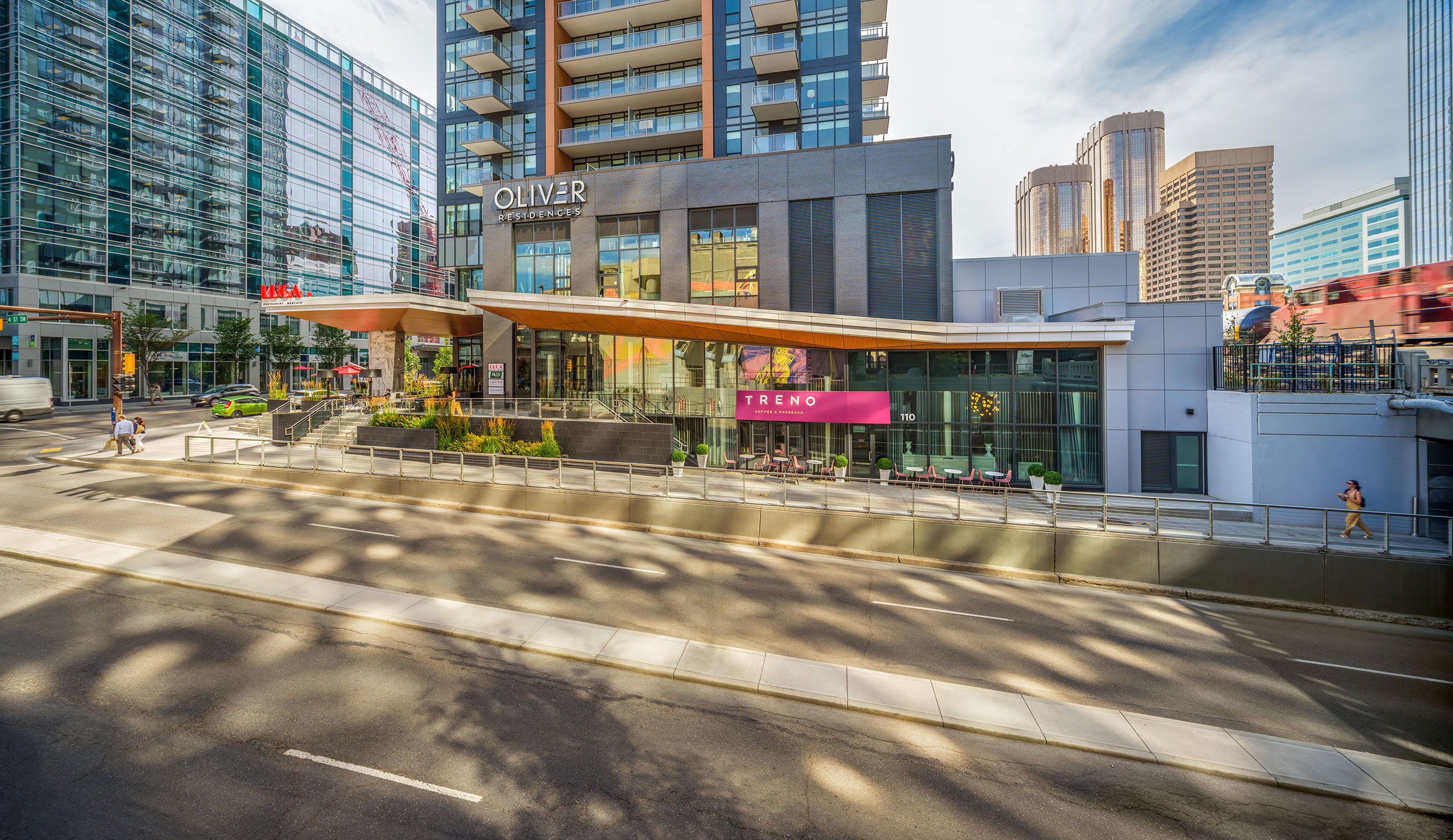 Nestled in the vibrant Beltline of Calgary, The Oliver stands as a mixed-use project seamlessly integrated into the fabric of the city, positioned adjacent to the bustling Downtown district. The architectural ingenuity of The Oliver is evident in its tower massing, thoughtfully designed to visually break down the building’s scale. A central vertical element becomes a focal point, adorned with wood-effect cladding and the popular Hebron Opus brick, infusing warmth and vertical emphasis into the structure. Delving into the intricacies of design, the north and south portions of the towers offer a harmonious counterpoint. Employing a regularized, square-proportioned grid on the facades, these sections create a balanced visual rhythm. This intentional design not only enhances the building’s aesthetic appeal but also allows the central mass to command attention, effectively addressing the East and West orientation of each tower. The Oliver transcends mere architecture; it represents a lifestyle curated for those who seek the pinnacle of urban sophistication.