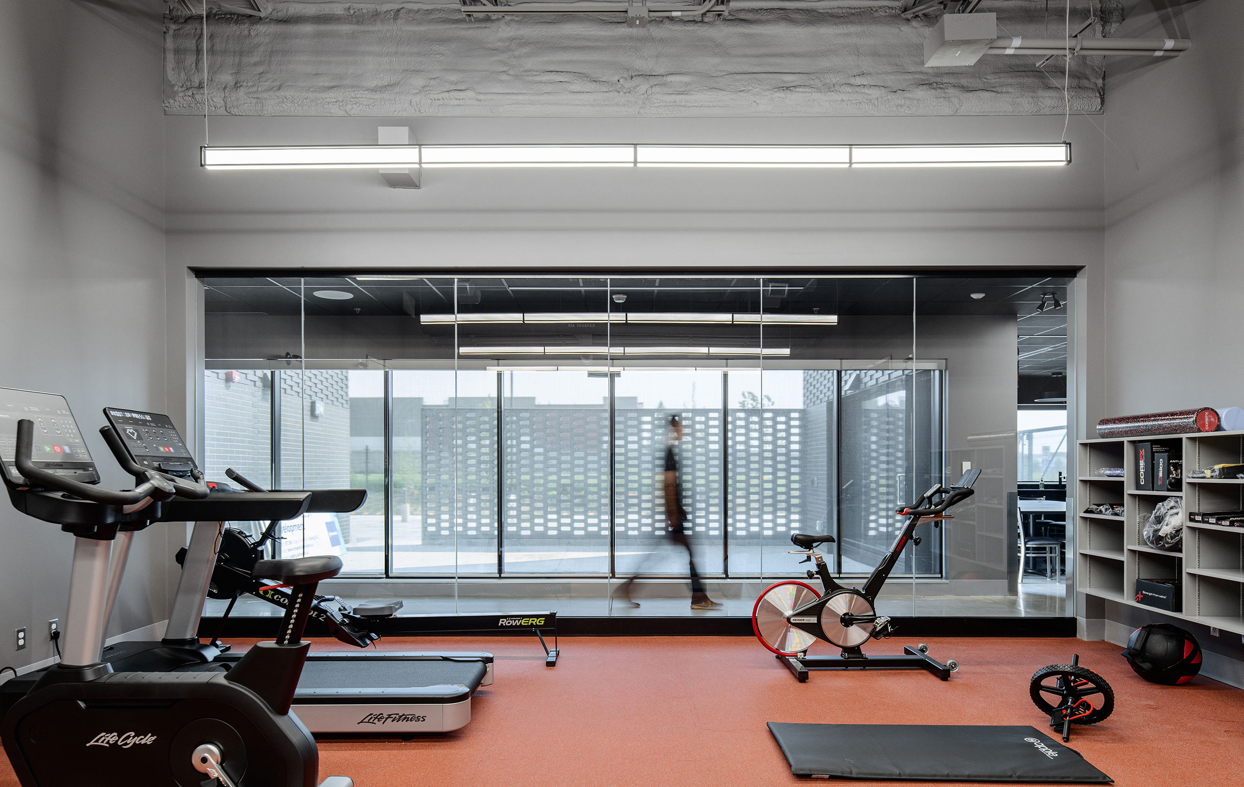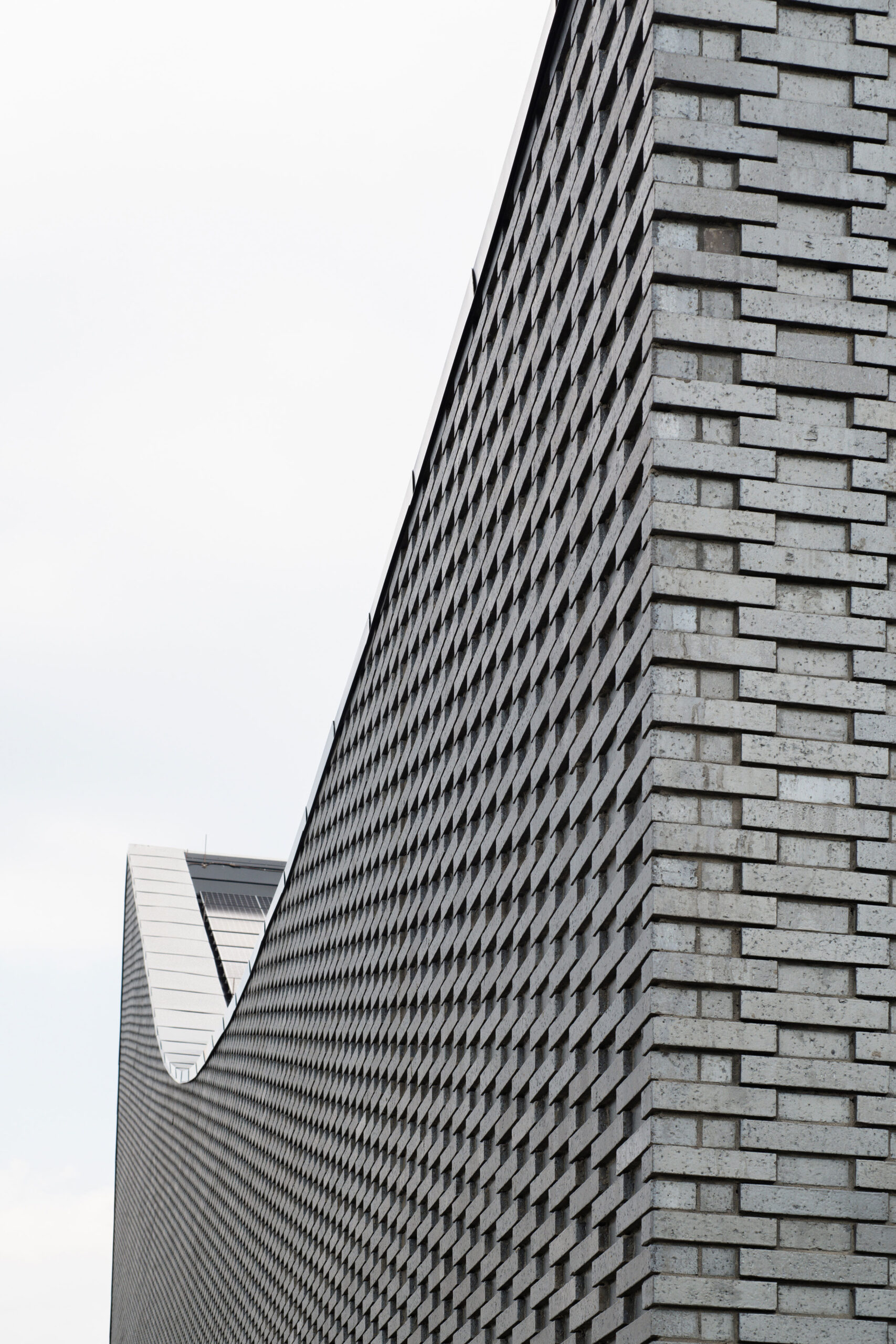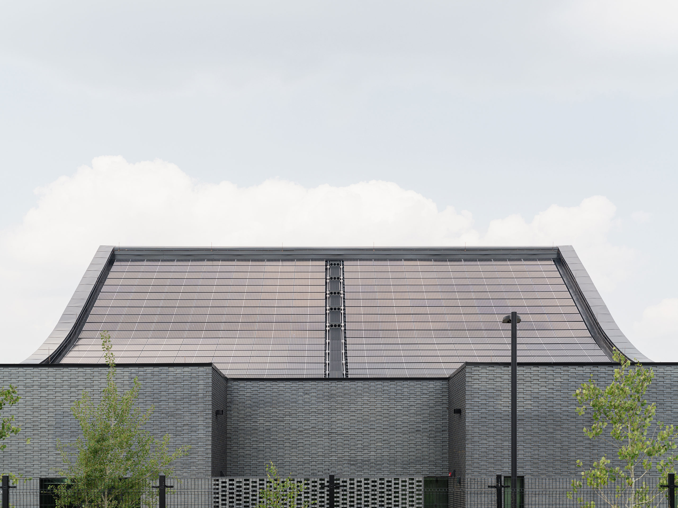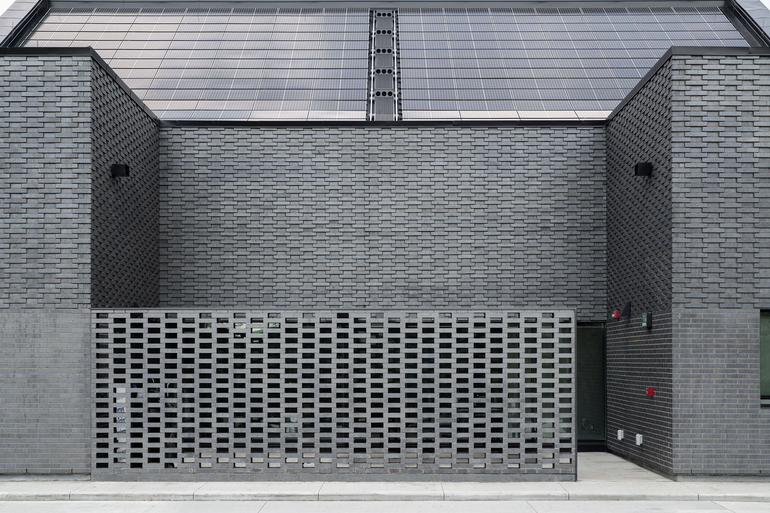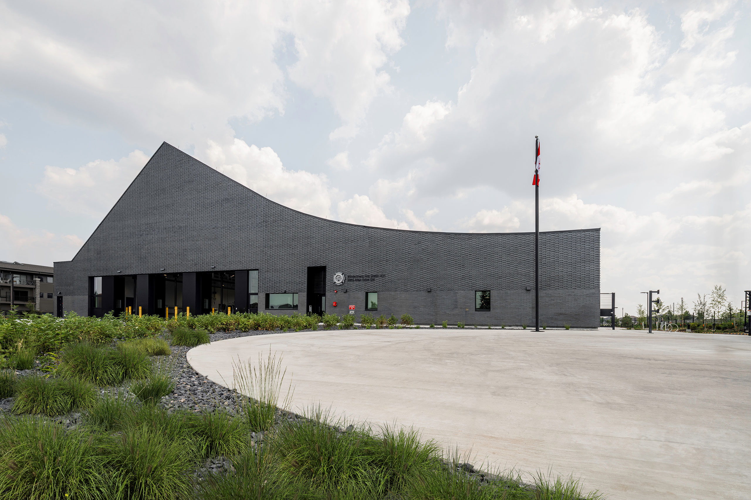 The Windermere Fire Station is a paragon of environmental sustainability and striking civic architecture. Key features of the design, the peaked roof and unique masonry, echo the historical context of fire stations nestled in residential neighborhoods. The exterior brick cladding evokes a distinct stature and gravitas while also allowing play of scale. The sculptural opportunities of brick are apparent in the switch at the window datum from a regular bond to an open, woven pattern. The latter provides visual texture and makes the most of the vibrant Alberta sunshine and intense Prairie shadows. This material approach enables a simultaneous interplay between the fine-grained detail of the brick and the monumentality of the building overall. The open weave pattern gives a texture, grain and visual interest to the large surfaces that it extends across. The pitched gable facing the street is a particularly expansive area of this brick treatment and plays a prominent role in the expression of the project’s primary concept, the ‘pinching up’ of the roof form. The subtle texturing of this area draws the eye across it and along the roofline, amplifying the importance of understanding this large, pitched form in the overall interpretation of the project. The brick is hand-laid by local masons. This was critical to the design intent where extra care had to be paid to achieve the distinctive sweep of the gable, and other custom details windows, entrances and firefighter’s patio.